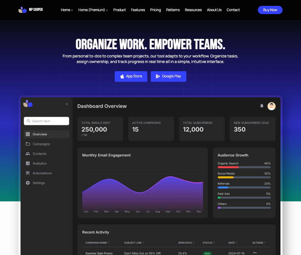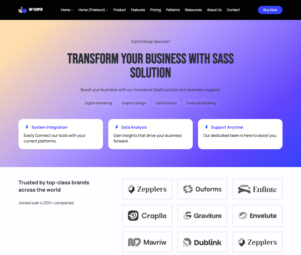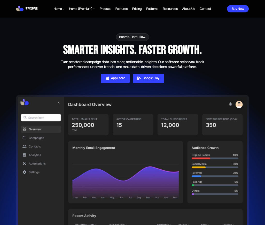 With WP Cooper, you don’t start from scratch. Choose from a growing library of professionally designed templates from SaaS landing pages to app websites, pricing pages, blogs, and more. Every template is built to be lightweight, fast, and conversion-focused, so you can launch quicker without sacrificing performance.